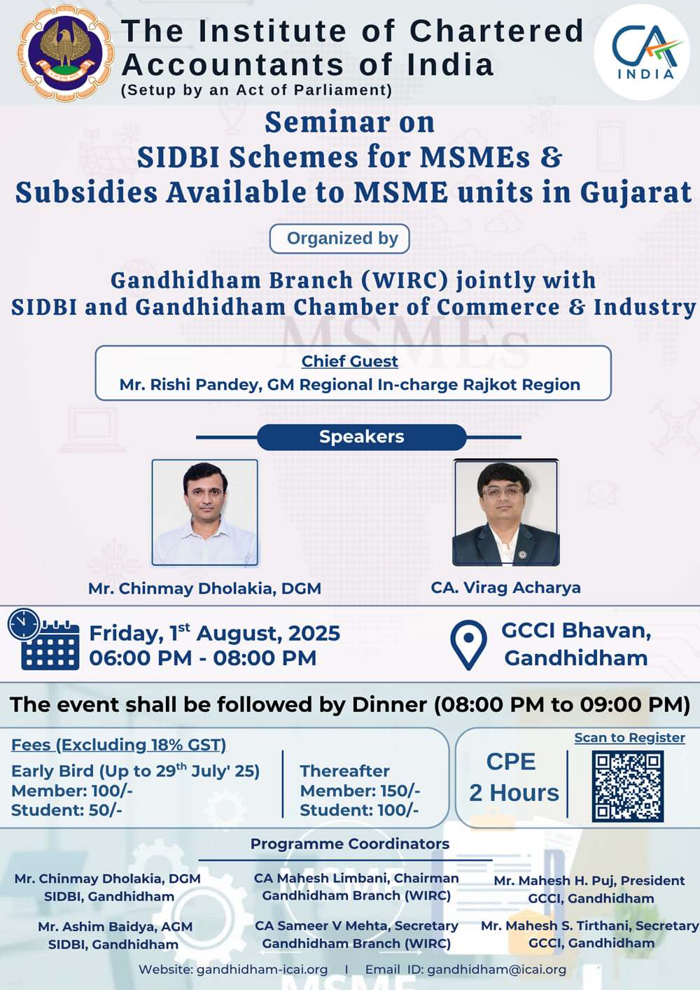 Title : Seminar on SIDBI Schemes for MSMEs & Subsidies Available to MSME units in Gujarat