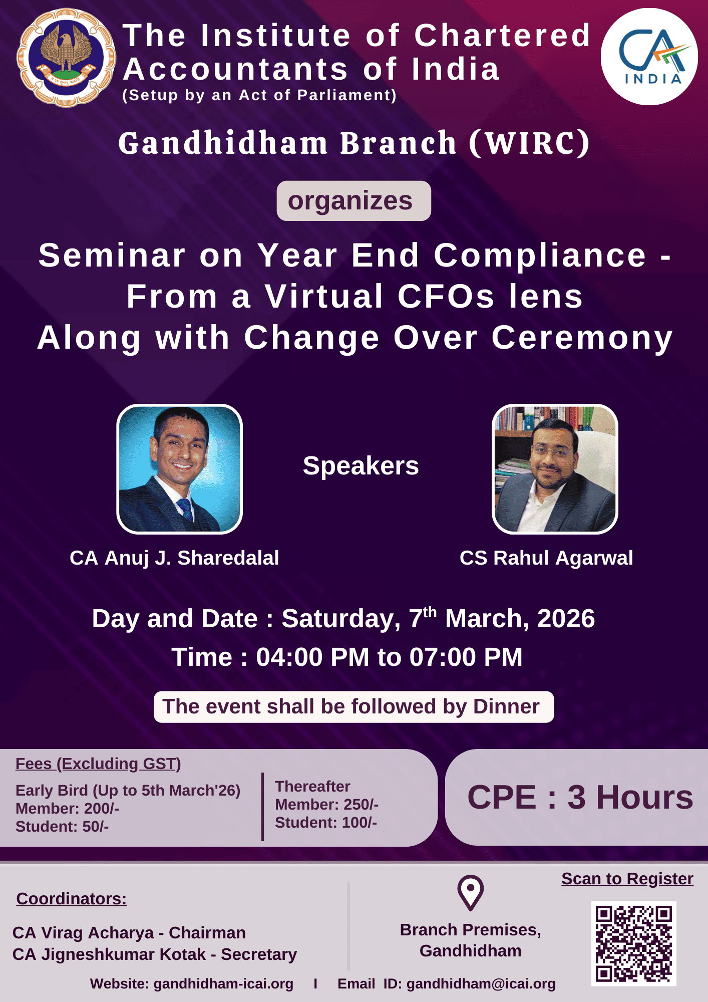 Faculty : 1. CA Anuj J. Sharedalal, 2. CS Rahul Agarwal